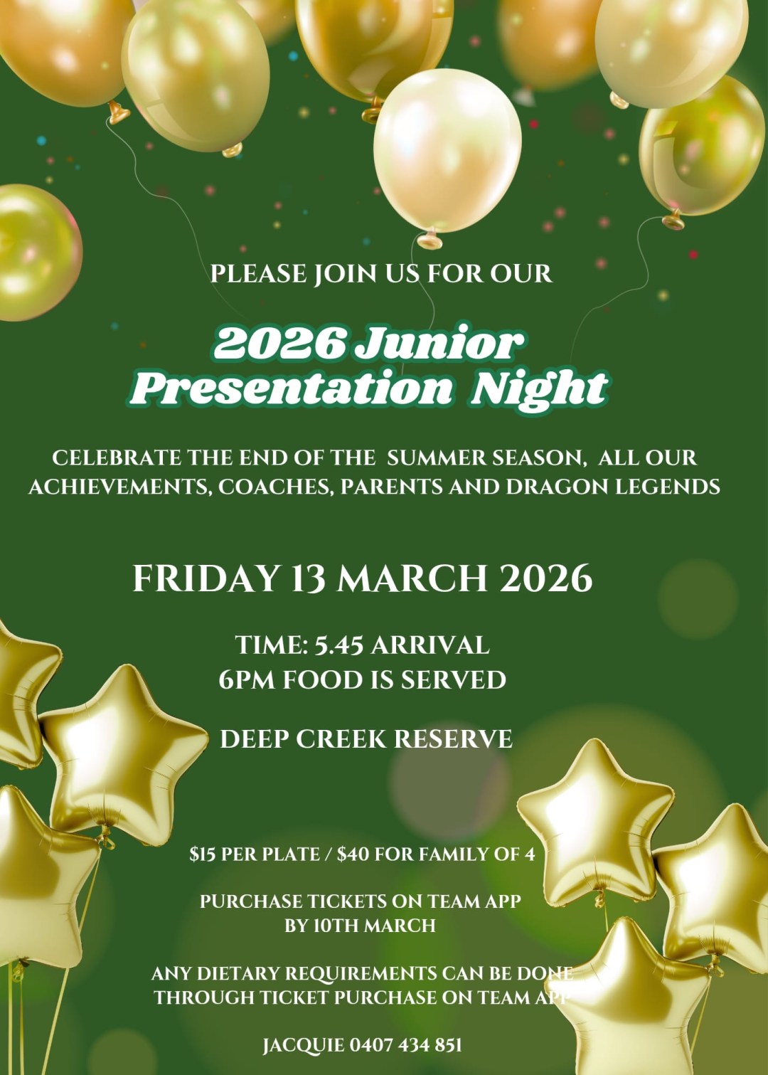 Celebrate the 2025/26 season with us! 2025/26 Junior Presentation Night at the home of the Dragons, Deep Creek Reserve. Tickets via TeamApp Related